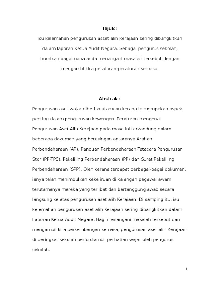 Pengurusan Aset Alih Kerajaan - 1.2 memudahkan pengesanan dan pemantauan;. Tatacara pengurusan aset alih kerajaan kp 2.5/2013 penyelenggaraan 1. Memastikan aset berfungsi dengan lancar secara berterusan dan selamat digunakan; 5 tahun 2007 iaitu tatacara pengurusan aset alih kerajaan dan pekeliling perbendaharaan bil. Format ini merupakan satu bentuk laporan yang perlu disediakan oleh pegawai aset di peringkat pelaksana bagi tujuan memberi laporan terperinci mengenai pengurusan aset (aset alih, aset hidup dan stor) di agensi. 1.2 menentukan kualiti dan kuantiti sebenar mengikut pesanan;